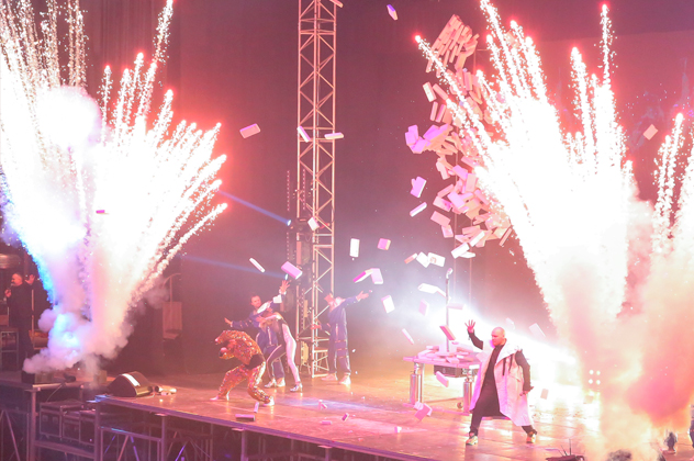 Новогоднее шоу «Повелители волшебства» – это грандиозные фокусы и спецэффекты, не имеющие аналогов в мире, уникальные превращения и фантастические объекты, и, конечно, фейерверки эмоций для всей семьи. Находясь в зрительном зале, вы обязательно воскликните: «Невероятно! Как они это делают?!».